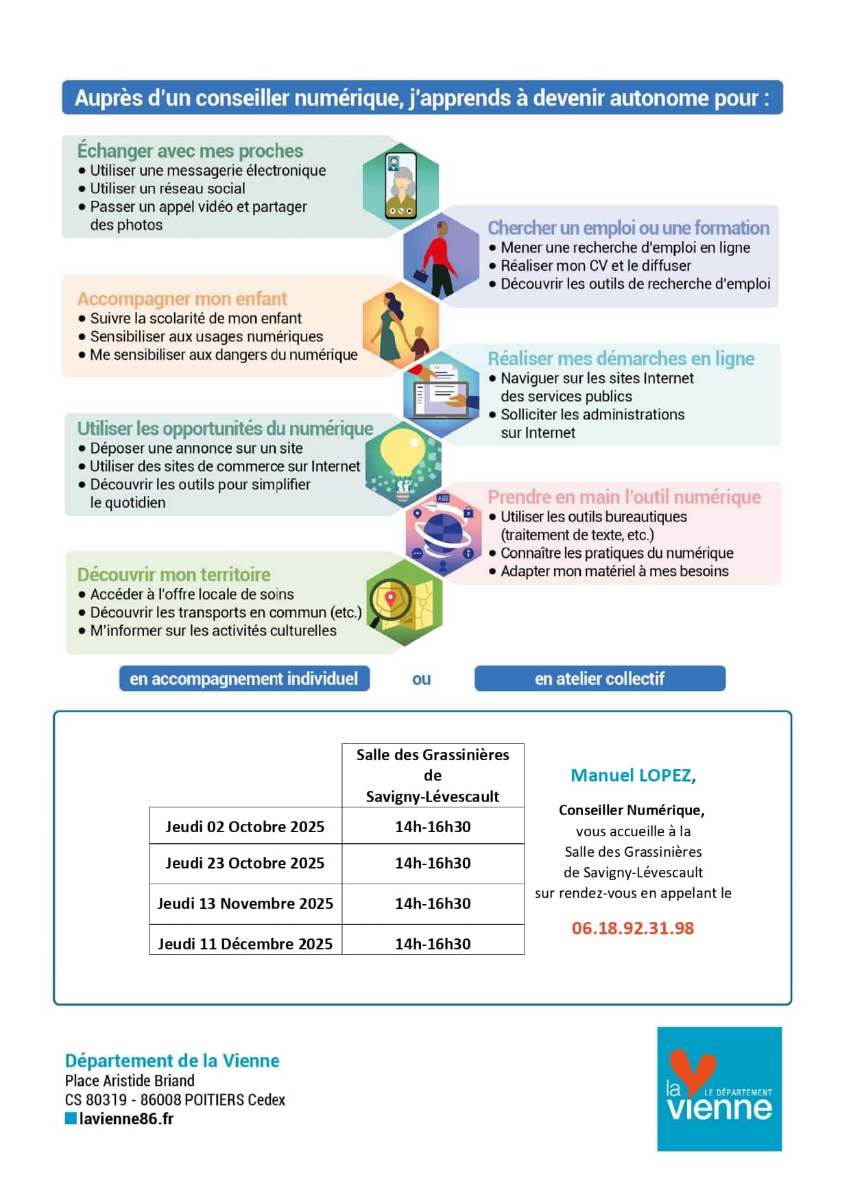 Ateliers numériques avec Manuel Lopez dans la salle des Grassinières de 14h à 16h30 aux dates suivantes :